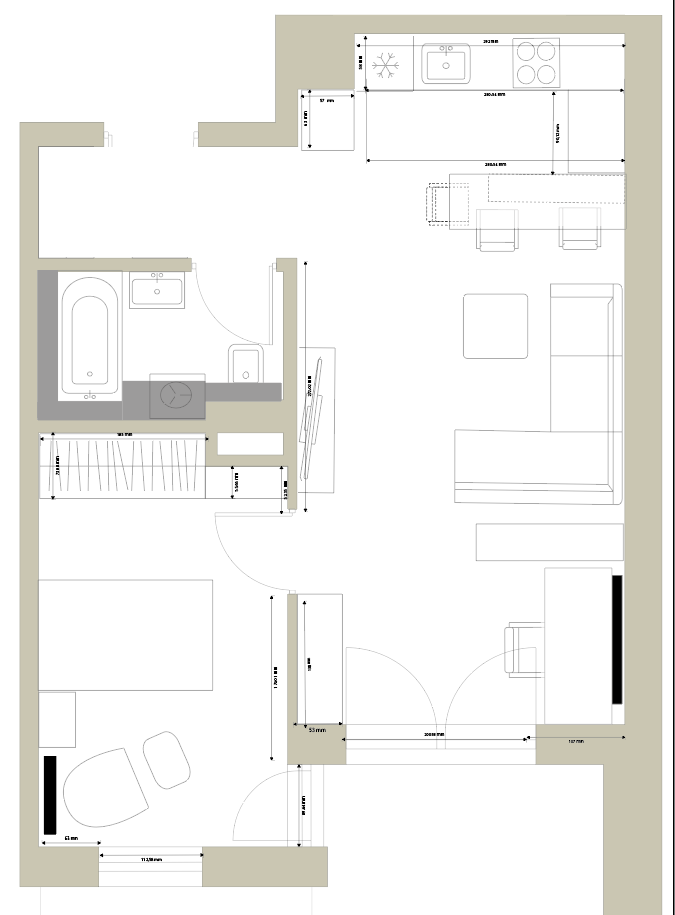 Posiadam gotowy projekt wnętrza mieszkania. 3 pomieszczenia: łazienka - 2 rzuty,