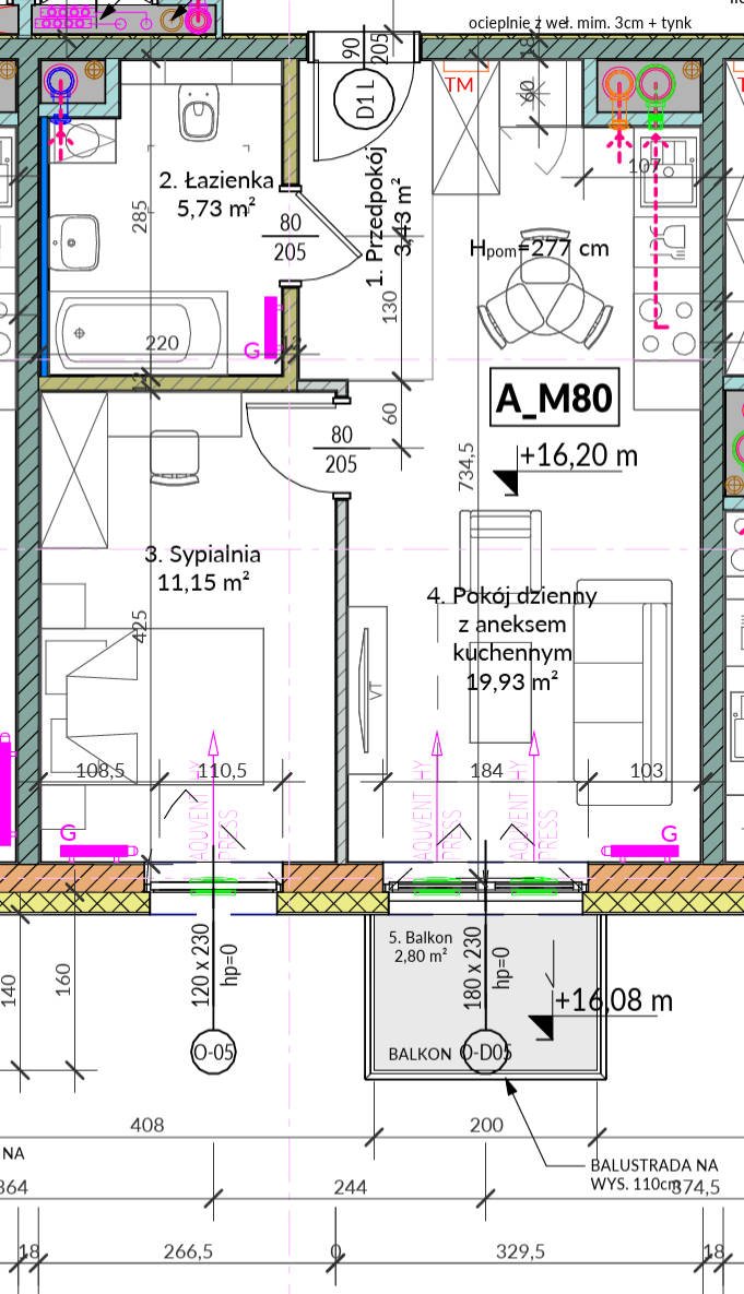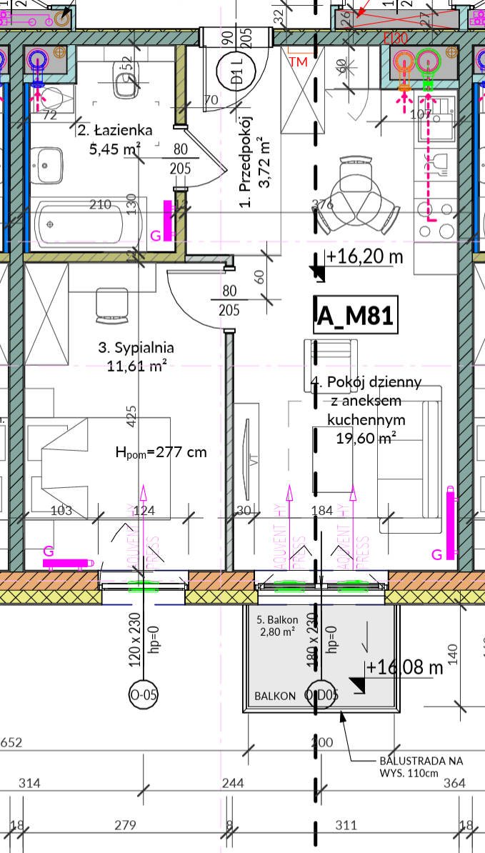 • wyłożenie kabli teletechnicznych salon->sypialnia (przewiert przez ścianę)